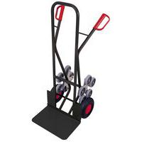 Lépcsőkocsi ötküllős csillagkerekekkel, szürke, nyommentes, hőre lágyuló gumiabroncsokkal. Acél szerkezet 480 x 300 mm méretű lapáttal. Két műanyag biztonsági fogantyú. Gumiabroncsok acélfelnire vagy tömörgumi kerekek műanyag felnire, precíziós golyóscsapágyakkal és műanyag kerékburkolattal. Keret felületkezelés porfestékkel RAL skála szerint. Ütés- és karcálló.