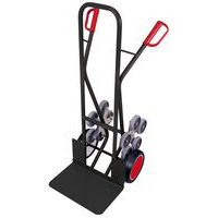 Lépcsőkocsi ötküllős csillagkerekekkel, szürke, nyommentes, hőre lágyuló gumiabroncsokkal. Acél szerkezet 480 x 300 mm méretű lapáttal. Két műanyag biztonsági fogantyú. Gumiabroncsok acélfelnire vagy tömörgumi kerekek műanyag felnire, precíziós golyóscsapágyakkal és műanyag kerékburkolattal. Keret felületkezelés porfestékkel RAL skála szerint. Ütés- és karcálló. Teherbírás (kg) : 200 kg