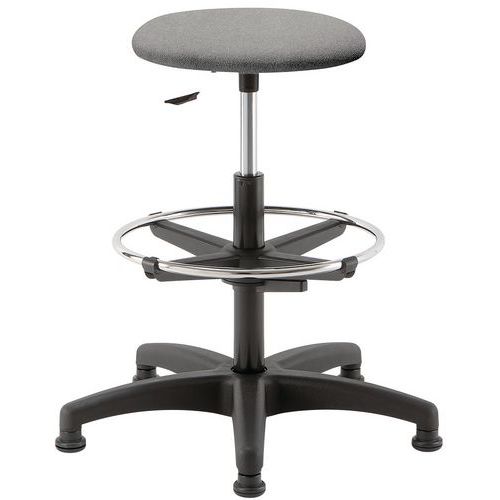 Magas és stabil szék a kényelmes munkavégzéshez. Állítsa be a lábtámasz magasságát, hogy a lehető legkényelmesebben üljön. Kör alakú lábtámasz a még nagyobb kényelem érdekében.