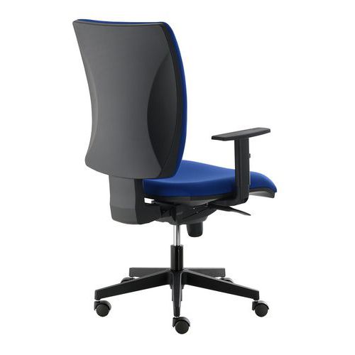 Kárpitozott forgószék irodába vagy otthoni dolgozószobába, antracit és sötétkék színben. A számítógépes széken való kényelmes ülést a szinkron mechanika és a magasságban állítható kartámlák biztosítják.
