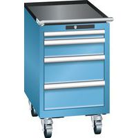 Mobil műhelyfiókos szekrények, Lista, 4 vagy 5 fiókkal. Bordázott csúszásgátló alátét a szekrény tetején. A mozgást 4 kerék és egy fogantyú teszi lehetővé. Kulcsos zár. Optimális használat a teljes kihúzásnak és az optimális fiókelőlap-magasságnak köszönhetően. Kiváló védelem a por, folyadékok és mechanikai kopás ellen a zárt keretnek köszönhetően, amelynek felülete ütés- és kopásálló. Borulásgátló rendszer, amely megakadályozza a fiók leesését, és egyedi fiókzár. Korrózióvédelem elektroforetikus merítéses festéssel és szórással. Optimalizált tárolóhely és rendszerezés a minden egyes alkalmazáshoz igazított LISTA elválasztóknak és a hornyokkal és perforációkkal ellátott fiókoknak köszönhetően. Professzionális címkézés LISTA Script címkézőszoftverrel és felhajtható címketartóval. Tökéletesen csendes mozgás a keresztléc nélküli csúszkának köszönhetően. A fiókelválasztók nem tartozékok. Külön kell megvásárolni.