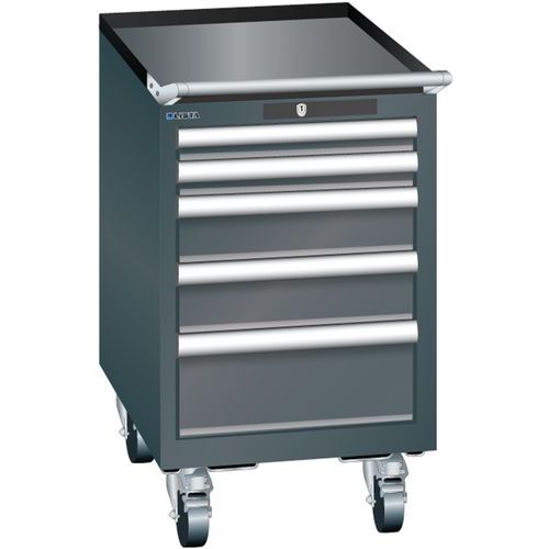 Mobil műhelyfiókos szekrények, Lista, 4 vagy 5 fiókkal. Bordázott csúszásgátló alátét a szekrény tetején. A mozgást 4 kerék és egy fogantyú teszi lehetővé. Kulcsos zár. Optimális használat a teljes kihúzásnak és az optimális fiókelőlap-magasságnak köszönhetően. Kiváló védelem a por, folyadékok és mechanikai kopás ellen a zárt keretnek köszönhetően, amelynek felülete ütés- és kopásálló. Borulásgátló rendszer, amely megakadályozza a fiók leesését, és egyedi fiókzár. Korrózióvédelem elektroforetikus merítéses festéssel és szórással. Optimalizált tárolóhely és rendszerezés a minden egyes alkalmazáshoz igazított LISTA elválasztóknak és a hornyokkal és perforációkkal ellátott fiókoknak köszönhetően. Professzionális címkézés LISTA Script címkézőszoftverrel és felhajtható címketartóval. Tökéletesen csendes mozgás a keresztléc nélküli csúszkának köszönhetően. A fiókelválasztók nem tartozékok. Külön kell megvásárolni.
