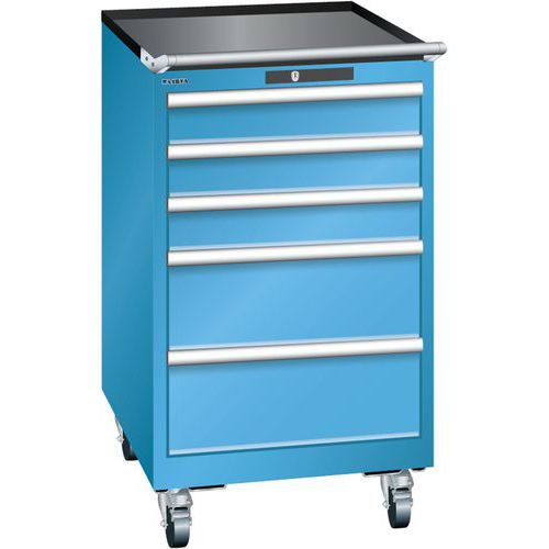 LISTA mobil műhelyfiókos szekrény, 5 fiók = 3x100 + 2x200 mm, 564x725x990 mm, világoskék LISTA mobil műhelyfiókos szekrény, 5 fiók = 3x100 + 2x200 mm, 564x725x990 mm, világoskék