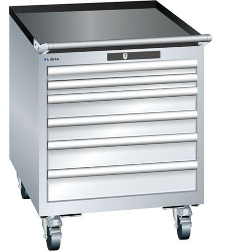 Bordázott csúszásgátló alátét a szekrény tetején. Védelem por és folyadékok ellen a zárt keretnek köszönhetően, amely ütés- és kopásálló felülettel rendelkezik. Biztonsági zár a fiókok leesése és egyedi zárása érdekében (borulásvédelem). Korrózióvédelem elektroforetikus immerziós festéssel és szórással. Professzionális címkézés LISTA Script címkézőszoftverrel és felhajtható címkebehelyező fogantyúval. Tökéletesen csendes mozgás a keresztléc nélküli csúszkának köszönhetően. A mozgást 4 kerék és egy fogantyú teszi lehetővé. Kulcsos zár. Max. terhelés (kg) : 75 kg