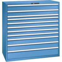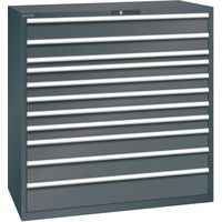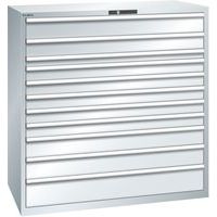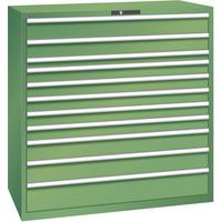 Lista műhelyszekrény 11 teljesen kihúzható fiókkal, akár 200 kg teherbírással. Védelem a por és folyadékok ellen a zárt keretnek köszönhetően, amely ütés- és kopásálló felülettel rendelkezik. Esésgátló biztonsági eszköz, amely megakadályozza a fiók leesését, és egyedi fiókzár (billenésgátló rendszer). Korrózióvédelem elektroforetikus merítéses festéssel és szórással. Professzionális címkézés LISTA Script címkézőszoftverrel és felhajtható címkebehelyező fogantyúval Tökéletesen csendes mozgás a keresztléc nélküli csúszkának köszönhetően Max. terhelés (kg) : 200