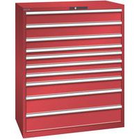 Lista műhelyfiókos szekrény, 1193x725x1450 mm, 200kg, 10 fiók, piros Lista műhelyfiókos szekrény, 1193x725x1450 mm, 200kg, 10 fiók, piros