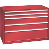 Lista műhelyfiókos szekrény, 1431x725x1000 mm, 75kg, 5 fiók, piros Lista műhelyfiókos szekrény, 1431x725x1000 mm, 75kg, 5 fiók, piros