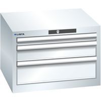 Optimális használat a teljes kihúzásnak és az optimális fiókelőlap-magasságnak köszönhetően. Kulcsos zár. Kiváló védelem a por, folyadékok és mechanikai kopás ellen a zárt keretnek köszönhetően, amelynek felülete ütés- és kopásálló. Borulásgátló rendszer, amely megakadályozza a fiók leesését, és egyedi fiókzár. Korrózióvédelem elektroforetikus immerziós festéssel és szórással. Korrózióvédelem elektroforetikus immerziós festéssel és szórással. Optimalizált tárolóhely és rendszerezés a minden egyes alkalmazáshoz igazított LISTA elválasztóknak és a hornyokkal és perforációkkal ellátott fiókoknak köszönhetően. Professzionális címkézés LISTA Script címkézőszoftverrel és felhajtható címketartóval. Tökéletesen csendes mozgás a keresztléc nélküli csúszkának köszönhetően Max. terhelés (kg) : 75 kg