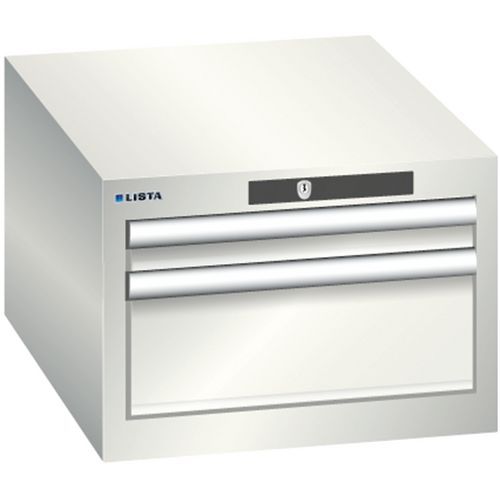 Lista műhelyfiókos szekrények, 2 vagy 3 fiókkal. Kulcsos zár. Optimális használat a teljes kihúzásnak és az optimális fiókelőlap-magasságnak köszönhetően. Kiváló védelem a por, folyadékok és mechanikai kopás ellen a zárt keretnek köszönhetően, amelynek felülete ütés- és kopásálló. Borulásgátló rendszer, amely megakadályozza a fiók leesését, és egyedi fiókzár. Korrózióvédelem elektroforetikus merítéses festéssel és szórással. Optimalizált tárolóhely és rendszerezés a minden egyes alkalmazáshoz igazított LISTA elválasztóknak és a hornyokkal és perforációkkal ellátott fiókoknak köszönhetően. Professzionális címkézés LISTA Script címkézőszoftverrel és felhajtható címkebehelyező fogantyúval. Tökéletesen csendes mozgás a keresztléc nélküli csúszkának köszönhetően A fiókelválasztók nem tartozékok. Külön kell megvásárolni. Max. terhelés (kg) : 75 kg