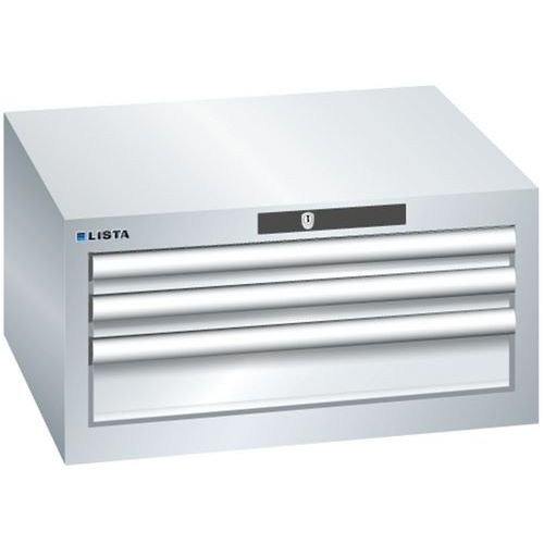 Optimális használat a teljes kihúzásnak és az optimális fiókelőlap-magasságnak köszönhetően. Kulcsos zár. Kiváló védelem a por, folyadékok és mechanikai kopás ellen a zárt keretnek köszönhetően, amelynek felülete ütés- és kopásálló. Borulásgátló rendszer, amely megakadályozza a fiók leesését, és egyedi fiókzár. Korrózióvédelem elektroforetikus immerziós festéssel és szórással. Korrózióvédelem elektroforetikus merítéses festéssel és szórással. Optimalizált tárolóhely és rendszerezés a minden egyes alkalmazáshoz igazított LISTA elválasztóknak és a hornyokkal és perforációkkal ellátott fiókoknak köszönhetően. Professzionális címkézés LISTA Script címkézőszoftverrel és felhajtható címketartóval. Tökéletesen csendes mozgás a keresztléc nélküli csúszkának köszönhetően A fiókelválasztók nem tartozékok. Külön kell megvásárolni. Max. terhelés (kg) : 75 kg