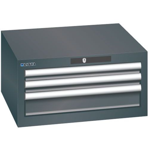 Optimális használat a teljes kihúzásnak és az optimális fiókelőlap-magasságnak köszönhetően. Kulcsos zár. Kiváló védelem a por, folyadékok és mechanikai kopás ellen a zárt keretnek köszönhetően, amelynek felülete ütés- és kopásálló. Borulásgátló rendszer, amely megakadályozza a fiók leesését, és egyedi fiókzár. Korrózióvédelem elektroforetikus immerziós festéssel és szórással. Korrózióvédelem elektroforetikus merítéses festéssel és szórással. Optimalizált tárolóhely és rendszerezés a minden egyes alkalmazáshoz igazított LISTA elválasztóknak és a hornyokkal és perforációkkal ellátott fiókoknak köszönhetően. Professzionális címkézés LISTA Script címkézőszoftverrel és felhajtható címketartóval. Tökéletesen csendes mozgás a keresztléc nélküli csúszkának köszönhetően A fiókelválasztók nem tartozékok. Külön kell megvásárolni. Max. terhelés (kg) : 75 kg