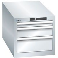 Lista műhelyfiókos szekrény, 3 fiókkal: 1x50mm + 1x100mm + 1x150mm, 411x725x383 mm, szürke Lista műhelyfiókos szekrény, 3 fiókkal: 1x50mm + 1x100mm + 1x150mm, 411x725x383 mm, szürke