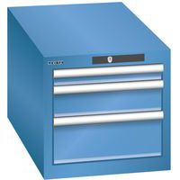 Lista műhelyfiókos szekrény, 3 fiókkal: 1x50mm + 1x100mm + 1x150mm, 411x725x383 mm, kék Lista műhelyfiókos szekrény, 3 fiókkal: 1x50mm + 1x100mm + 1x150mm, 411x725x383 mm, kék