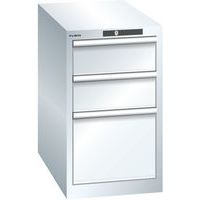 Lista műhelyfiókos szekrények, 3 vagy 5 fiókkal. Kulcsos zár. Optimális használat a teljes kihúzásnak és az optimális fiókelőlap-magasságnak köszönhetően. Kiváló védelem a por, folyadékok és mechanikai kopás ellen a zárt keretnek köszönhetően, amelynek felülete ütés- és kopásálló. Borulásgátló rendszer, amely megakadályozza a fiók leesését, és egyedi fiókzár. Korrózióvédelem elektroforetikus merítéses festéssel és szórással. Optimalizált tárolóhely és rendszerezés a minden egyes alkalmazáshoz igazított LISTA elválasztóknak és a hornyokkal és perforációkkal ellátott fiókoknak köszönhetően. Professzionális címkézés LISTA Script címkézőszoftverrel és felhajtható címketartóval. Tökéletesen csendes mozgás a keresztléc nélküli csúszkának köszönhetően. A fiókelválasztók nem tartozékok. Külön kell megvásárolni. Max. terhelés (kg) : 75 kg