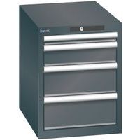Lista műhelyfiókos szekrények, 4 fiókkal. Kulcsos zár. Optimális használat a teljes kihúzásnak és az optimális fiókelőlap-magasságnak köszönhetően. Kiváló védelem a por, folyadékok és mechanikai kopás ellen a zárt keretnek köszönhetően, amelynek felülete ütés- és kopásálló. Borulásgátló rendszer, amely megakadályozza a fiók leesését, és egyedi fiókzár. Korrózióvédelem elektroforetikus merítéses festéssel és szórással. Optimalizált tárolóhely és rendszerezés a minden egyes alkalmazáshoz igazított LISTA elválasztóknak és a hornyokkal és perforációkkal ellátott fiókoknak köszönhetően. Professzionális címkézés LISTA Script címkézőszoftverrel és felhajtható címketartóval. Tökéletesen csendes mozgás a keresztléc nélküli csúszkának köszönhetően. A fiókelválasztók nem tartozékok. Külön kell megvásárolni. Max. terhelés (kg) : 75 kg