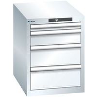 Lista műhelyfiókos szekrények, 4 fiókkal. Kulcsos zár. Optimális használat a teljes kihúzásnak és az optimális fiókelőlap-magasságnak köszönhetően. Kiváló védelem a por, folyadékok és mechanikai kopás ellen a zárt keretnek köszönhetően, amelynek felülete ütés- és kopásálló. Borulásgátló rendszer, amely megakadályozza a fiók leesését, és egyedi fiókzár. Korrózióvédelem elektroforetikus merítéses festéssel és szórással. Optimalizált tárolóhely és rendszerezés a minden egyes alkalmazáshoz igazított LISTA elválasztóknak és a hornyokkal és perforációkkal ellátott fiókoknak köszönhetően. Professzionális címkézés LISTA Script címkézőszoftverrel és felhajtható címketartóval. Tökéletesen csendes mozgás a keresztléc nélküli csúszkának köszönhetően. A fiókelválasztók nem tartozékok. Külön kell megvásárolni. Max. terhelés (kg) : 75 kg