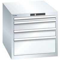 Védelem por és folyadékok ellen a zárt keretnek köszönhetően, amely ütés- és kopásálló felülettel rendelkezik Biztonsági zár a fiókok leesése és egyedi zárása érdekében (borulásvédelem). Korrózióvédelem elektroforetikus immerziós festéssel és szórással. Professzionális címkézés LISTA Script címkézőszoftverrel és felhajtható címkebehelyező fogantyúval. Tökéletesen csendes mozgás a keresztléc nélküli csúszkának köszönhetően. Kulcsos zár. Max. terhelés (kg) : 75 kg