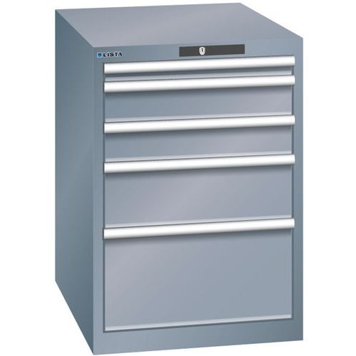 LISTA műhelyfiókos szekrény, 5 fiók = 1x 50 + 2x 100 + 1x 200 + 1x 300 mm, 564x725x850 mm, sötétszürke LISTA műhelyfiókos szekrény, 5 fiók = 1x 50 + 2x 100 + 1x 200 + 1x 300 mm, 564x725x850 mm, sötétszürke