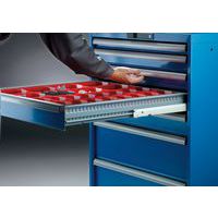 Védelem por és folyadékok ellen a zárt keretnek köszönhetően, amely ütés- és kopásálló felülettel rendelkezik. Biztonsági zár a fiókok leesése és egyedi zárása érdekében (borulásvédelem). Korrózióvédelem elektroforetikus immerziós festéssel és szórással. Professzionális címkézés LISTA Script címkézőszoftverrel és felhajtható címkebehelyező fogantyúval. Tökéletesen csendes mozgás a keresztléc nélküli csúszkának köszönhetően. Kulcsos zár.