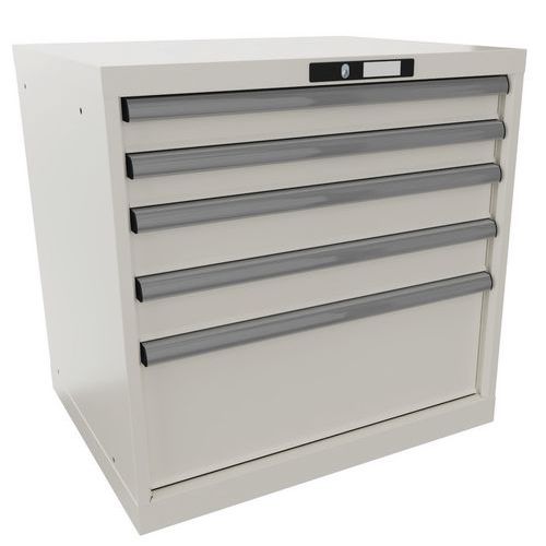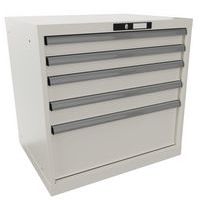 Védelem por és folyadékok ellen a zárt keretnek köszönhetően, amely ütés- és kopásálló felülettel rendelkezik. Biztonsági zár a fiókok leesése és egyedi zárása érdekében (borulásvédelem). Korrózióvédelem elektroforetikus immerziós festéssel és szórással. Professzionális címkézés LISTA Script címkézőszoftverrel és felhajtható címkebehelyező fogantyúval. Tökéletesen csendes mozgás a keresztléc nélküli csúszkának köszönhetően. Kulcsos zár. Max. terhelés (kg) : 75