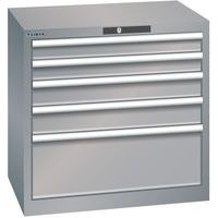 LISTA műhelyfiókos szekrény, 5 fiók = 2x75 + 2x100 + 1x250 mm, 717x572x700 mm, szürke/ezüst LISTA műhelyfiókos szekrény, 5 fiók = 2x75 + 2x100 + 1x250 mm, 717x572x700 mm, szürke/ezüst