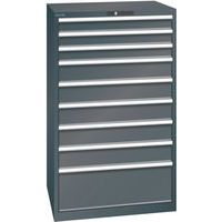LISTA műhelyfiókos szekrények, 9 fiók = 3x100mm +5x150 +1x300mm, fiók teherbírása 75kg, 870x725x1450mm, fekete LISTA műhelyfiókos szekrények, 9 fiók = 3x100mm +5x150 +1x300mm, fiók teherbírása 75kg, 870x725x1450mm, fekete