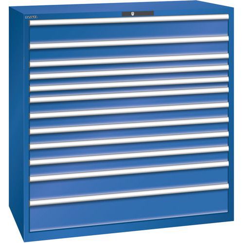 Lista műhelyfiókos szekrények, teherbírás 200 kg, 12 fiók.
