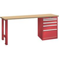 Műhely munkapad LISTA, 1500x700x840 mm, 5 fiók, teherbírás 1500 kg, piros Műhely munkapad LISTA, 1500x700x840 mm, 5 fiók, teherbírás 1500 kg, piros