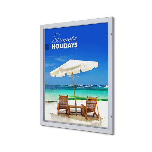 A plakáttartók alkalmasak szórólapok, fényképek, plakátok, speciális ajánlatok stb. bemutatására. A zárható keretek tartós polikarbonátból készülnek. A plakátokat mágneses behajtható profil segítségével lehet a keretbe helyezni. A gumitömítés védi a plakátokat a nedvességgel és a víz bejutásával szemben.