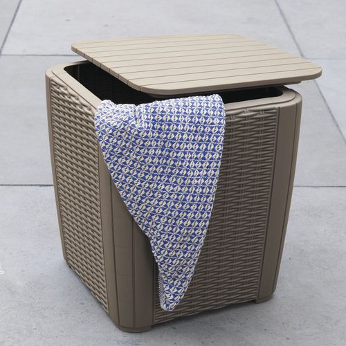 A praktikus kerti asztal lekerekített sarkokkal tökéletesen kiegészíti a terasz, pergola vagy erkély ülőhelyeit. Tárolódobozként is szolgál a kanapék, párnák, takarók stb. számára. Kiváló minőségű műanyagból készült, rattan utánzatban. Időjárás- és UV-álló.