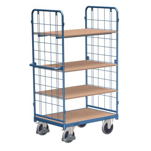Magas polcos kocsik fogantyúval és rácsos oldalfalakkal, 500 kg-ig, 4 polc