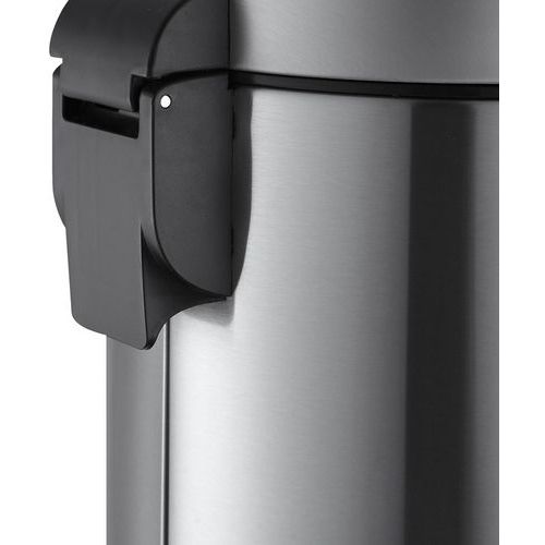 Kizárólag elegáns pedálos mechanizmussal ellátott hulladékgyűjtő, domború fedél csendes zárással és nyitva tartás funkcióval, valamint műanyag béléssel.