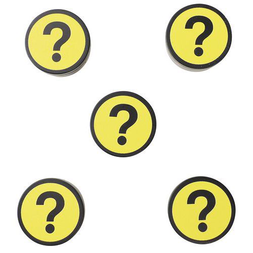 Kerek mágnesek dokumentumok fémfelületekhez rögzítéséhez. Az élénk színek és a kérdőjel szimbólum játékossá teszik a táblákat. Válasszon vizuális kommunikációs módot.