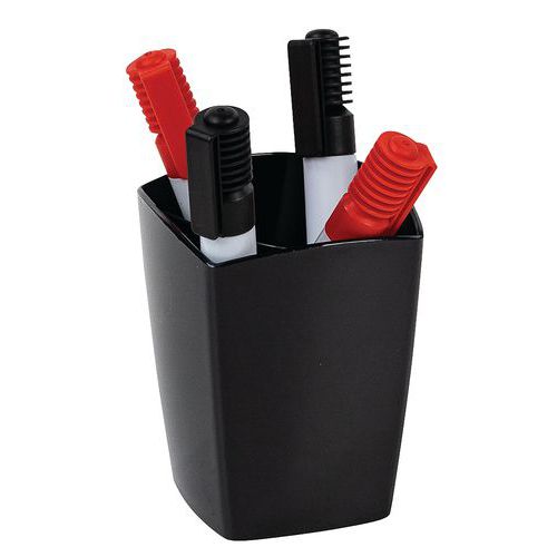 Mágneses ceruzatartók modern dizájnnal. Tartsa kéznél a tollakat és az apró tárgyakat. Két rekesz a tárgyak elkülönítéséhez és függőleges tartásához. Legfeljebb 10 táblajelölő tárolására alkalmas. Ütésálló műanyagból készült.