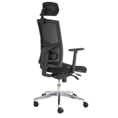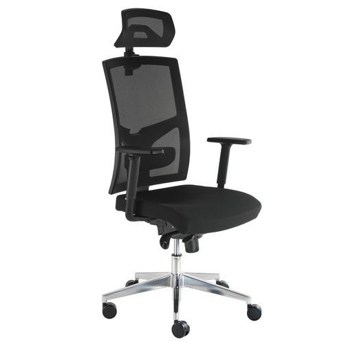 Manager VIP Nature irodai szék textil ülőlappal és légáteresztő hálóból készült háttámlával, állítható deréktámasszal és fejtámlával. Az ülőlap Cura anyagú huzata rendkívül tartós, akár 100 000 ciklust kibír. Gázlifttel állítható ülésmagasság. Az ülőlap mélysége 5 cm-es tartományban állítható a használó igényeinek megfelelően. Állítható magasságú poliuretán karfa puha tapintású felülettel. A stabilitást alumínium keret biztosítja. Javasolt használati idő: 8 óra. Méretek (ma x szé x mé): 140 x 69 x 51 cm. Szinkronmechanika biztosítja, hogy az ülőlap és a háttámla folyamatosan érintkezzen a széket használó személy hátával. A szék ülőlapja követi a háttámla döntését, így bármilyen dőlésszög ergonomikus üléspozíciót biztosít. A mechanika mozgása a kívánt helyzetben rögzíthető. Állítható nyomóerővel és ülőlap magassággal. Teherbírás (kg) : 150