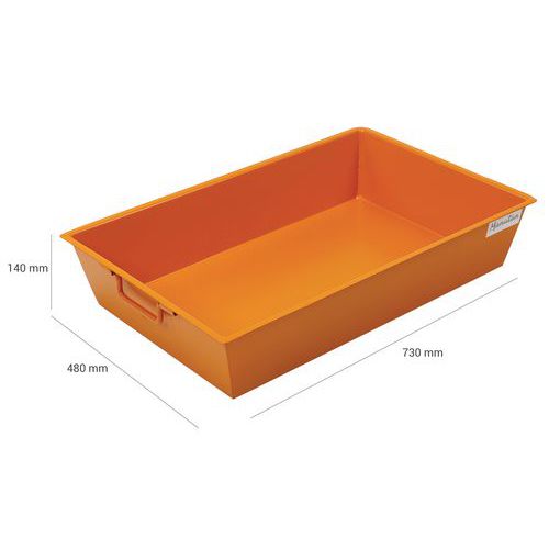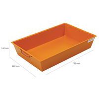 Egymásba rakható acél kádak tartályok vagy konténerek elhelyezésére, ahol nem kívánatos folyadékszivárgás fordul elő. Ellenáll a szénhidrogéneknek és az oldószereknek, minden kád átkerül a szivárgásteszten. Narancssárga RAL 2000 színre lakkozva.