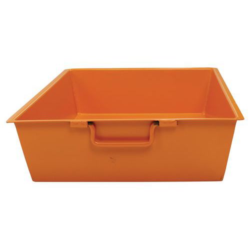 Egymásba rakható acél kádak tartályok vagy konténerek elhelyezésére, ahol nem kívánatos folyadékszivárgás fordul elő. Ellenáll a szénhidrogéneknek és az oldószereknek, minden kád átkerül a szivárgásteszten. Narancssárga RAL 2000 színre lakkozva.