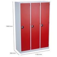Termék neve Manutan Expert hegesztett öltözőszekrény, 3 részes, hengerzár, szürke/piros