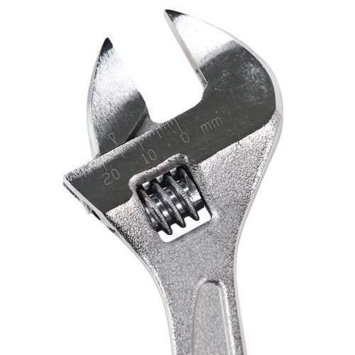 Állítható csavarkulcsok króm-vanádium acélból. A fej 15°-os szögben döntött. Fényes felületkezelésű fej.