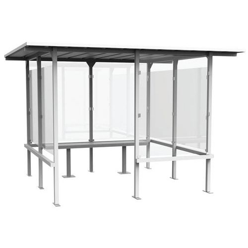 Dohányzófülke négyoldali üvegfallal az eső és a rossz időjárás elleni optimális védelem érdekében. Beépített fémpaddal. A biztonsági, edzett üveglapok vastagsága 4 mm. 50 x 50 mm-es tűzihorganyzott acélprofil szerkezettel. 200 °C-on égetett, hőre keményedő UV-álló poliészter festékkel felületkezelve. Állítható magasságú lábakkal (min. 1,95 m). A fülke a talajhoz rögzíthető. Beton alaphoz való rögzítésére használjon M12/65 horgonycsavarokat, tiszta sík aszfalthoz M12/120 menetes szárakat (minimális aszfaltvastagság: 7 cm).