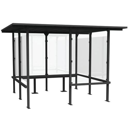 Dohányzófülke négyoldali üvegfallal az eső és a rossz időjárás elleni optimális védelem érdekében. Beépített fémpaddal. A biztonsági, edzett üveglapok vastagsága 4 mm. 50 x 50 mm-es tűzihorganyzott acélprofil szerkezettel. 200 °C-on égetett, hőre keményedő UV-álló poliészter festékkel felületkezelve. Állítható magasságú lábakkal (min. 1,95 m). A fülke a talajhoz rögzíthető. Beton alaphoz való rögzítésére használjon M12/65 horgonycsavarokat, tiszta sík aszfalthoz M12/120 menetes szárakat (minimális aszfaltvastagság: 7 cm).