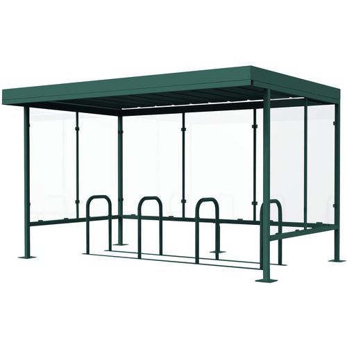 Manutan Expert Beaulieu kerékpártároló üveg fülke, hossza: 3,8 m, zöld Manutan Expert Beaulieu kerékpártároló üveg fülke, hossza: 3,8 m, zöld