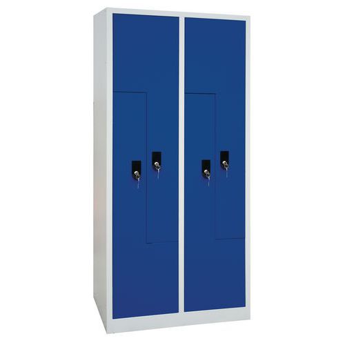 Manutan Expert Carl hegesztett öltözőszekrény, Z ajtó, 4 részes, hengerzár, szürke/kék