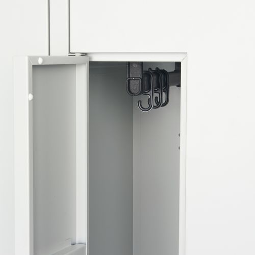 A csomagolás része egy vállfatartó rúd és 3 ruhatartó kampó. Két kulccsal szállítjuk minden részhez.