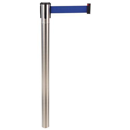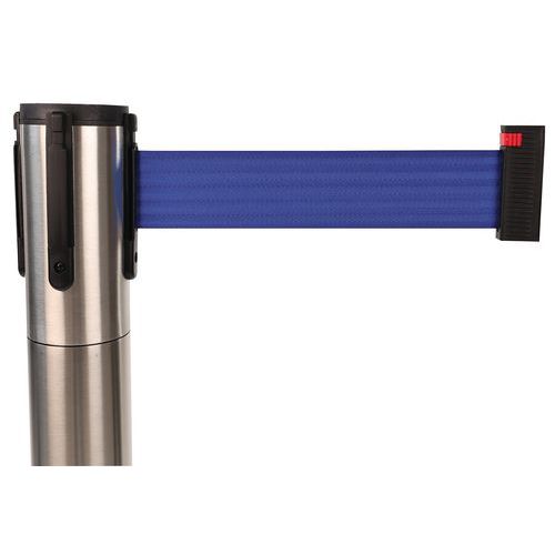 Krómozott torlaszoló oszlopok öncsévélő szalaggal személyek navigációjához. A könnyebb kezelés érdekében a talapzat két görgővel van ellátva. Az oszlop feje három szalagrögzítővel rendelkezik. Gyártói garancia az ügyfélnek : 10 év