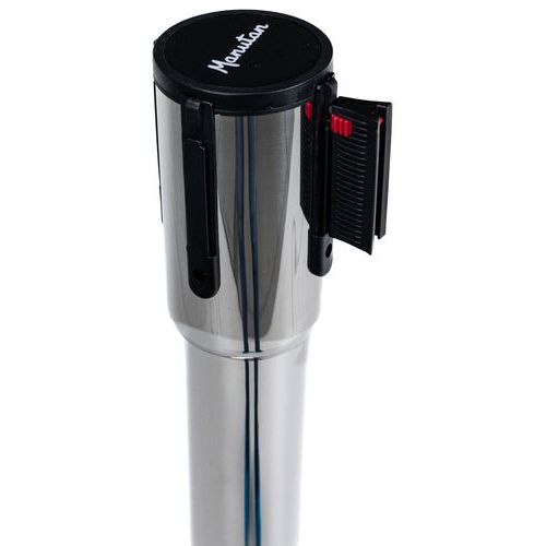 Krómozott torlaszoló oszlopok öncsévélő szalaggal személyek navigációjához. A könnyebb kezelés érdekében a talapzat két görgővel van ellátva. Az oszlop feje három szalagrögzítővel rendelkezik. Gyártói garancia az ügyfélnek : 10 év