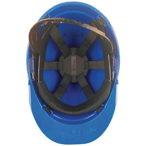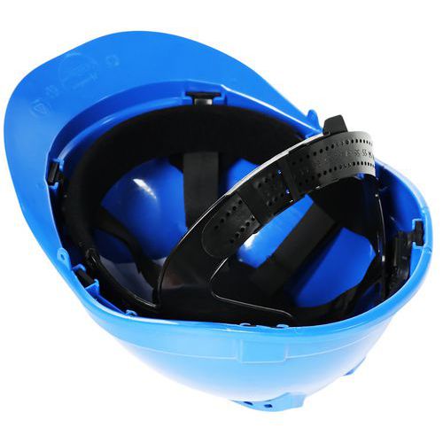 Könnyű, HDPE védősisakok 6 pontos rögzítési rendszerrel.