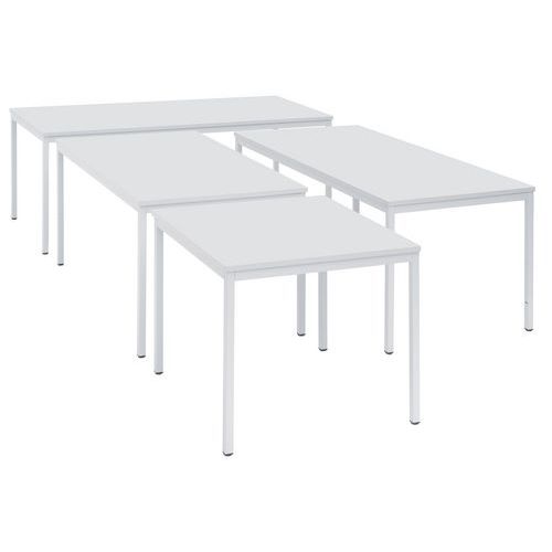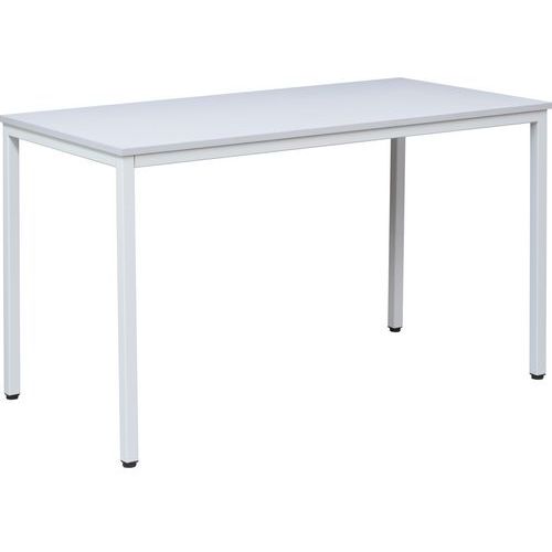 Asztal étkezőkben, grafikai műhelyben, stb. történő használatra. Farostlemez asztallap, vastagsága: 18 mm és 2 mm ABS védőélekkel. A lábak felületkezelése porlakkal világos szürke RAL 7035 színben. A szintező csavarokkal kiegyenlíthetők a padló kisebb egyenetlenségei.