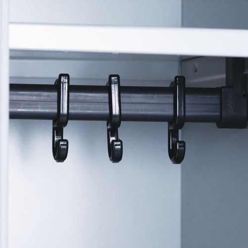 Tartozék polc, vállfatartó rúd és 3 ruhatartó kampó. A hengerzáras változathoz két kulcsot adunk.