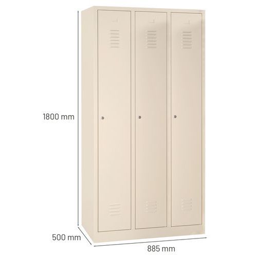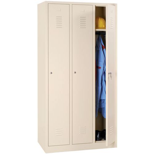 Manutan Expert DURO PROFI hegesztett öltözőszekrény, 3 részes, bézs/bézs, hengerzár